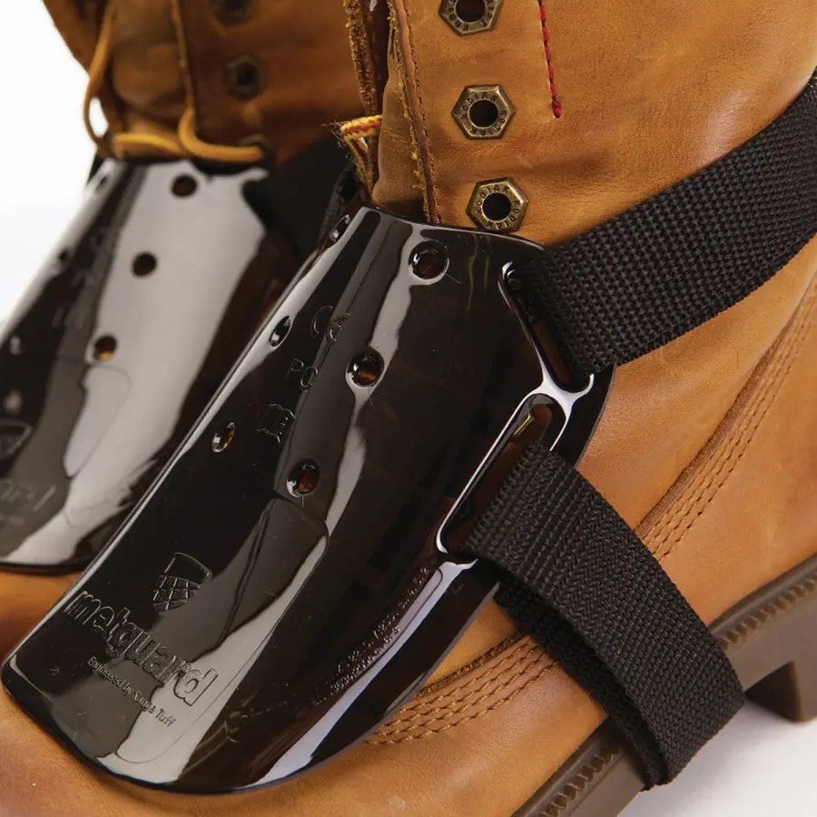 The IMPACTO metatarsal guard is a unique device that protects the metatarsal area of the foot. Designed to compliment steel cap footwear. Made of extremely durable yet lightweight polycarbonate material. Secured with existing laces or optional straps.