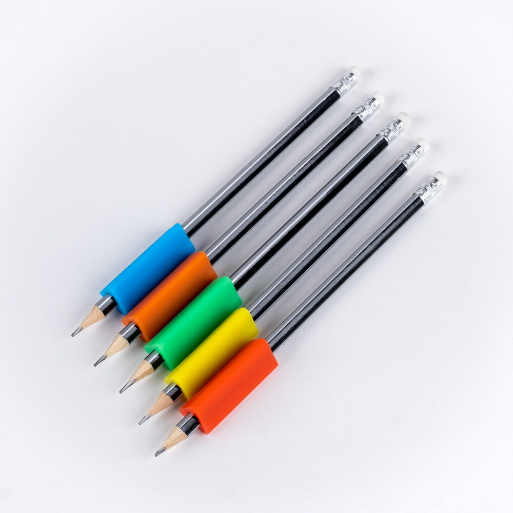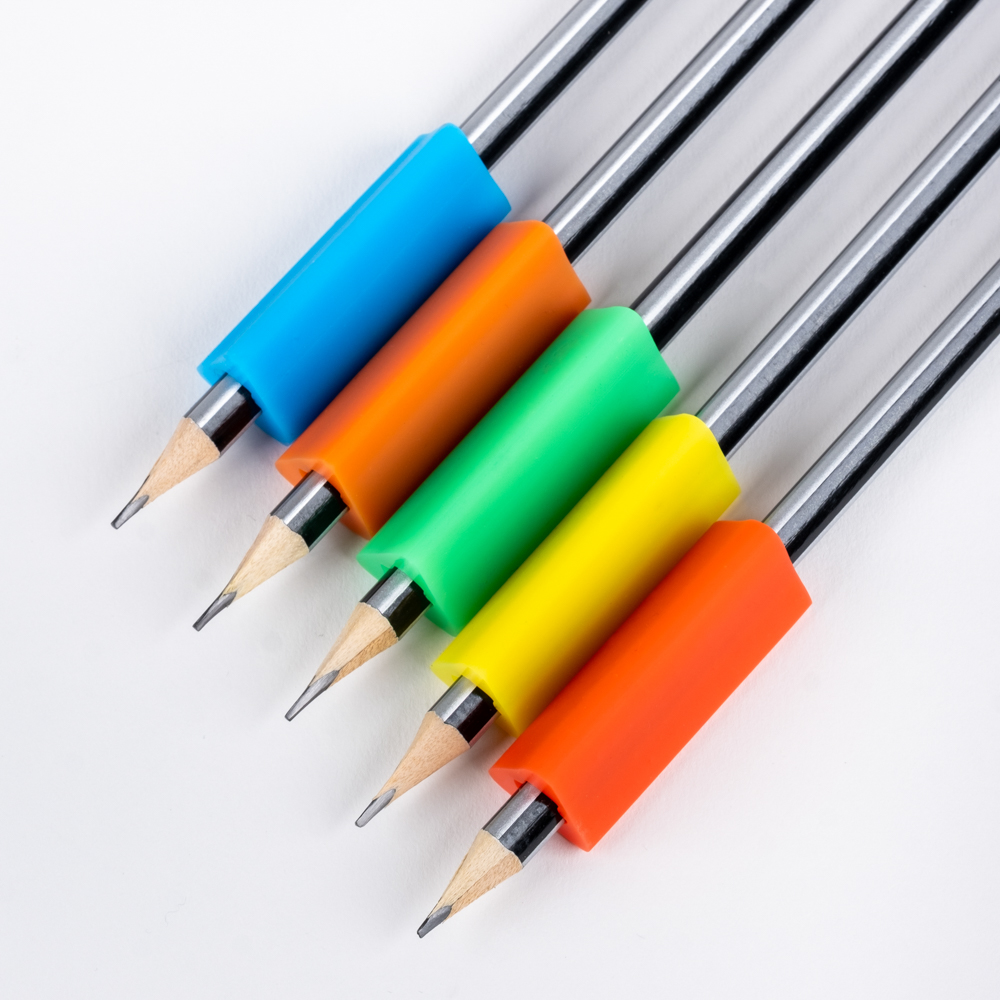 3-sided triangle shape pencil grips – one size fits all suitable for lefties and righties.