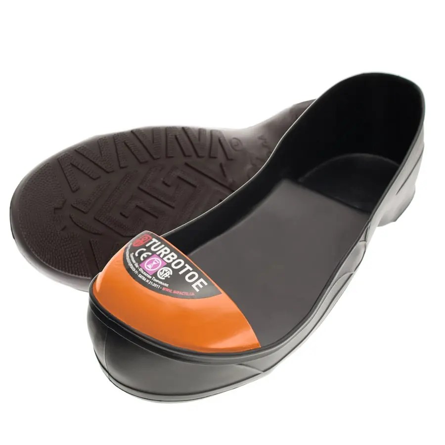 The IMPACTO TURBO TOE Composite toe cap overshoes protect the toe area from accidental impact, crushing or stubbing. Made of flexible, pliable PVC. Treads under the sole to prevent slipping and help liquid flow away from the foot.